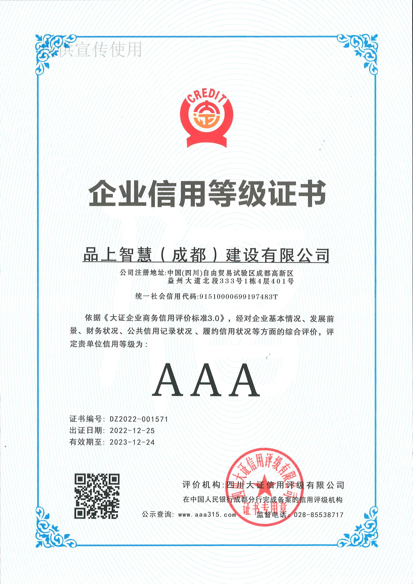 企业信息等级证书